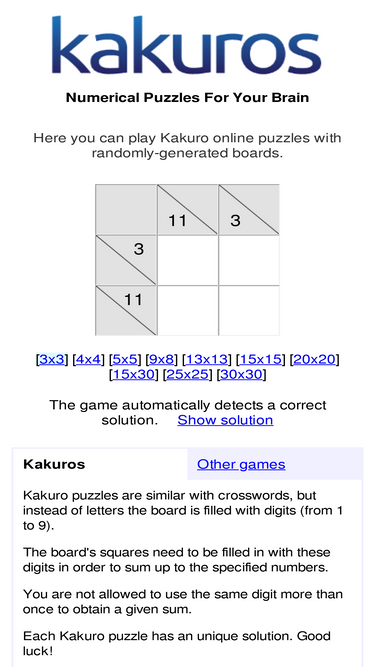 Top 49 Similar Websites Like Kakuro Online Com And Alternatives from www.siteprice.org I've been meaning to learn how to do these brain teasers for a while now. The spruce / kelly miller word search puzzles are a good way for kids to learn n. Play the free online crossword puzzle from the atlantic, created by puzzle constructor, caleb madison. They feature fun puzzles of all types that'll keep you entertained. Puzzles are a fun way to pass the time whether on a rainy day or as a family project. The spruce / jaime knoth free jigsaw puzzles are a great way to relax while challenging your mind at the same tim. Learn more about sudoku puzzles and how to solve them at sudoku.com. Crossword puzzles are for everyone.